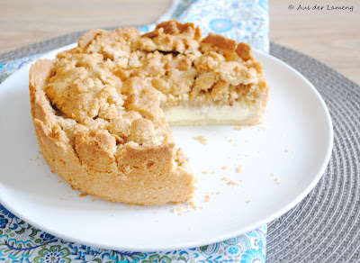 Für den Mürbeteig alle Zutaten miteinander zu einem glatten Teig verkneten. Die Hälfte des Teiges in Folie wickeln und in den Kühlschrank legen. Die andere Hälfte einfrieren. Für eine 26er Springform den ganzen Teig verwenden und die Zutaten für die Füllung und die Streusel einfach verdoppeln.