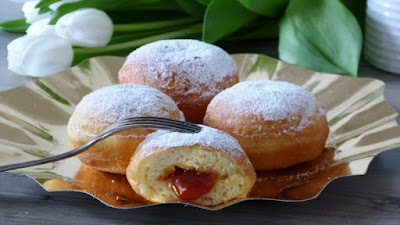 Vanessa von ÖkoLife hat auch noch etwas süßes beigesteuert: leckere fränkische Krapfen, gefüllt mit Hiffenmark, einer Art Hagebuttenmarmelade, auch ein Karnevalsklassiker.