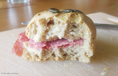 Im vorgeheizten Backofen bei 230°C Ober/-Unterhitze zusammen mit einer Schale Wasser ca 20.min goldbraun backen. Herausgekommen sind super leckere Brötchen, innen weich und außen mit einer knusprigen Kruste. Alle hier waren begeistert; mein Mann meinte, das wären die besten Brötchen, die ich je gebacken habe. Na wenn das nicht mal ein Kompliment ist, nicht wahr liebe Sandra?