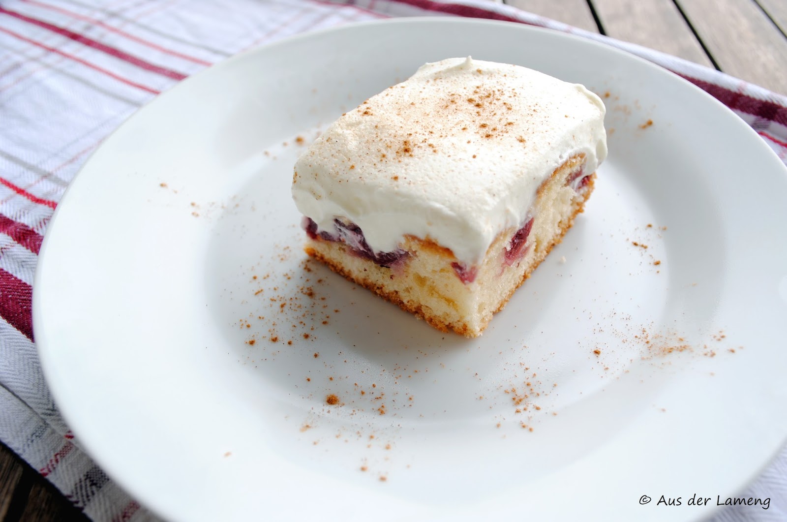 Diesen Kuchen habe ich mir als Kind immer schon zum Geburtstag gewünscht und letztens zum Geburtstag von der Kleinen seit langem mal wieder gemacht. Und was soll ich sagen? Immer noch super lecker! Saftiger Teig mit Kirschen, frische Sahnecreme und das Zimt-Topping, einfach toll! Und nicht nur bei Kindern beliebt, wie ich mit Freude feststellen konnte.