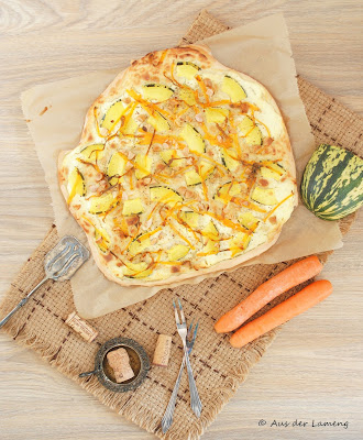 Ach ja, meine Liebe zu Flammkuchen kennt ihr ja mittlerweile schon. Jetzt ist es  natürlich an der Zeit für Kürbis-Flammkuchen. Eine vegetarische Variante mit Karotten und Pekanüssen…hmm, lecker!